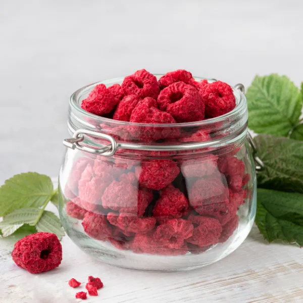 A liofilizált málna a fagyasztva szárításnak köszönhetően vitamin- és ásványianyag-tartalmának 97%-át megőrzi.